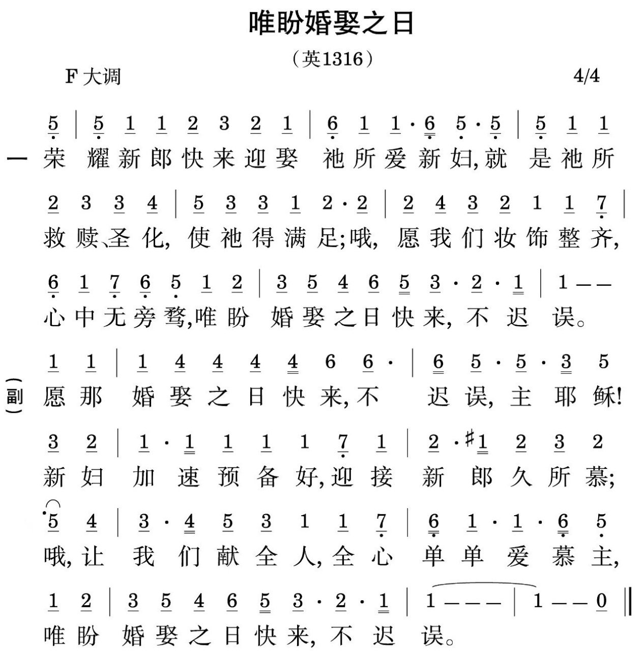荣耀新郎快来迎娶祂所爱新妇,
