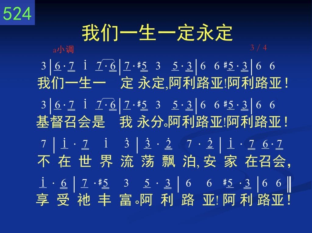 我们一生一定永定,阿利路亚!阿利路亚!