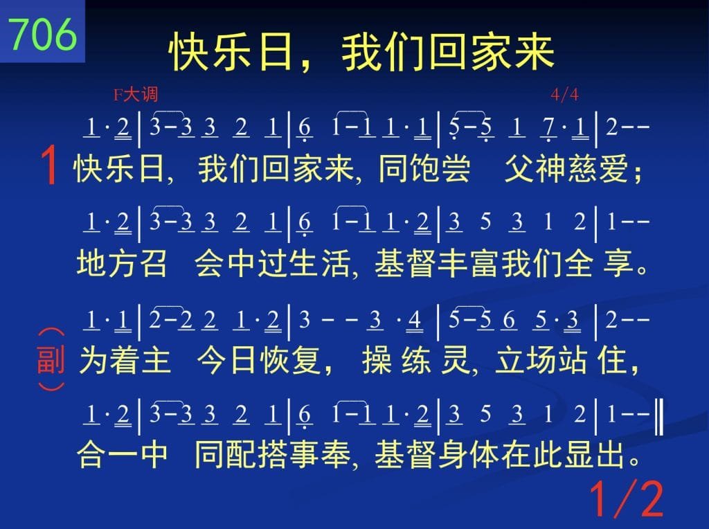 快乐日,我们回家来,同饱尝父神慈爱;