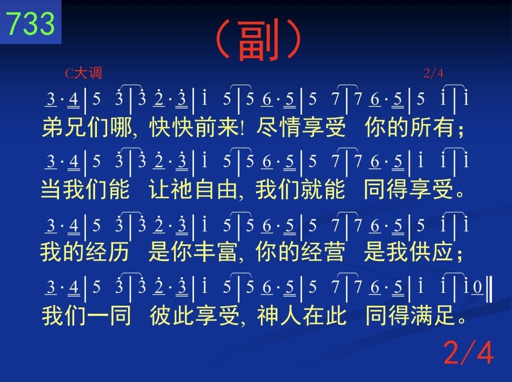 弟兄们哪,快快前来!尽情享受你的所有;