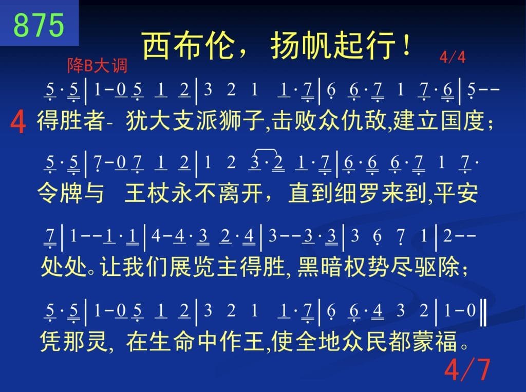 让我们展览主得胜,黑暗权势尽驱除;