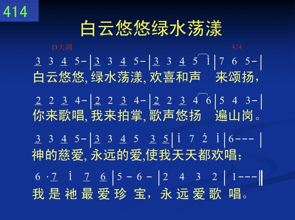 白云悠悠,绿水荡漾,欢喜和声来颂扬,