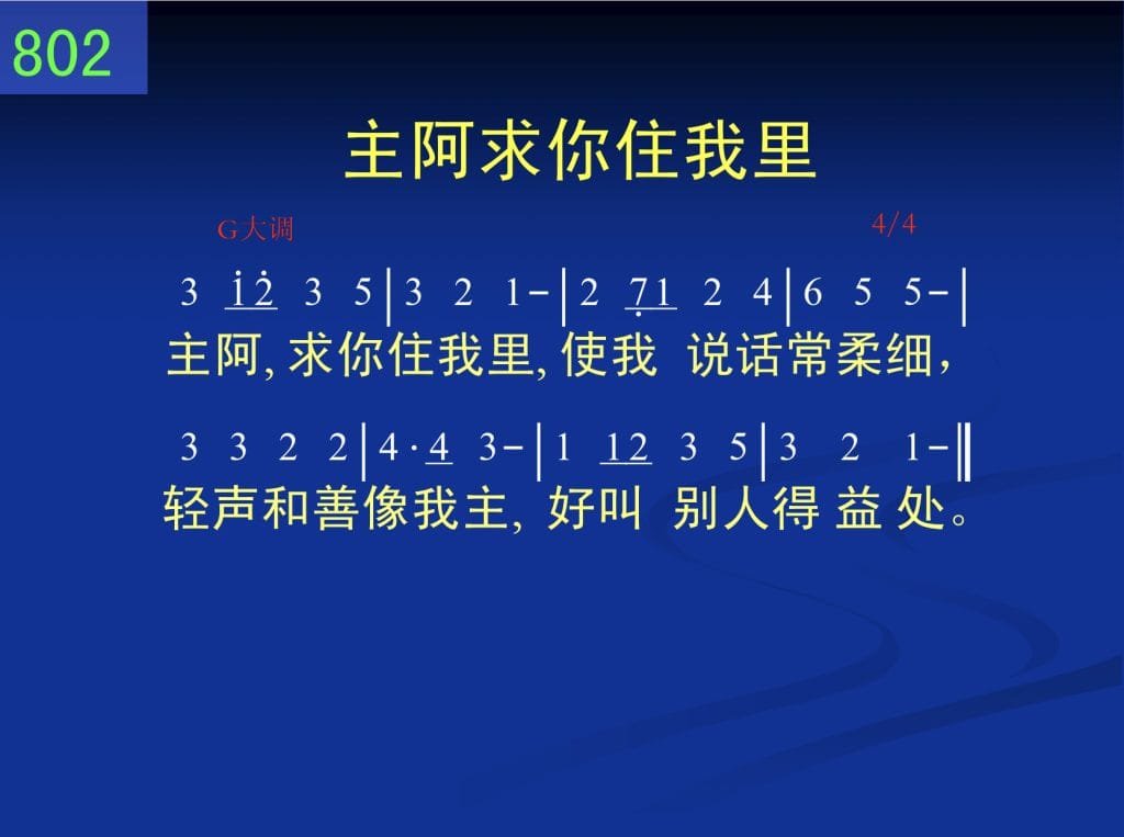 主阿,求你住我里,使我说话常柔细,