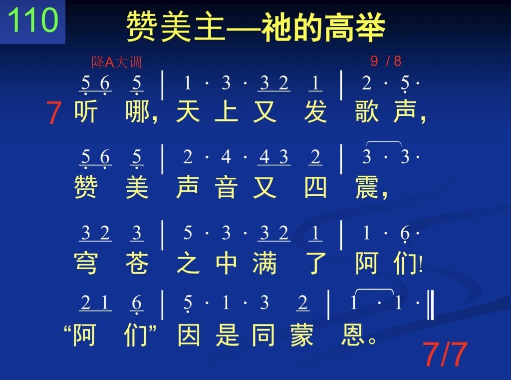 听哪,天上又发歌声,赞美声音又四震,