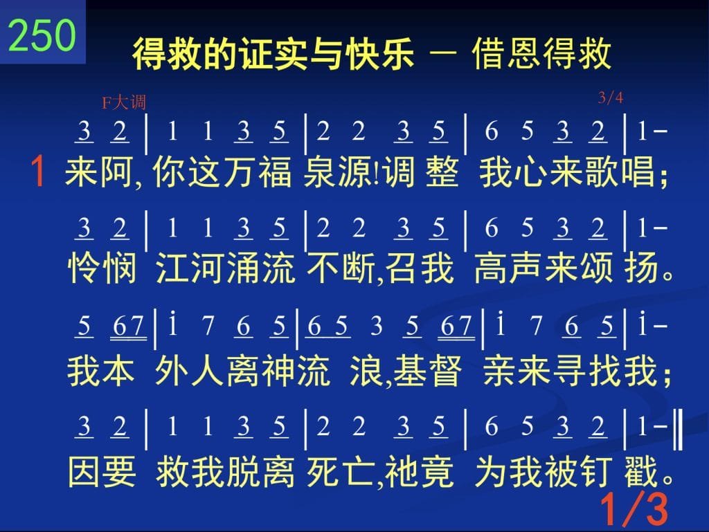 来阿,你这万福泉源!调整我心来歌唱;