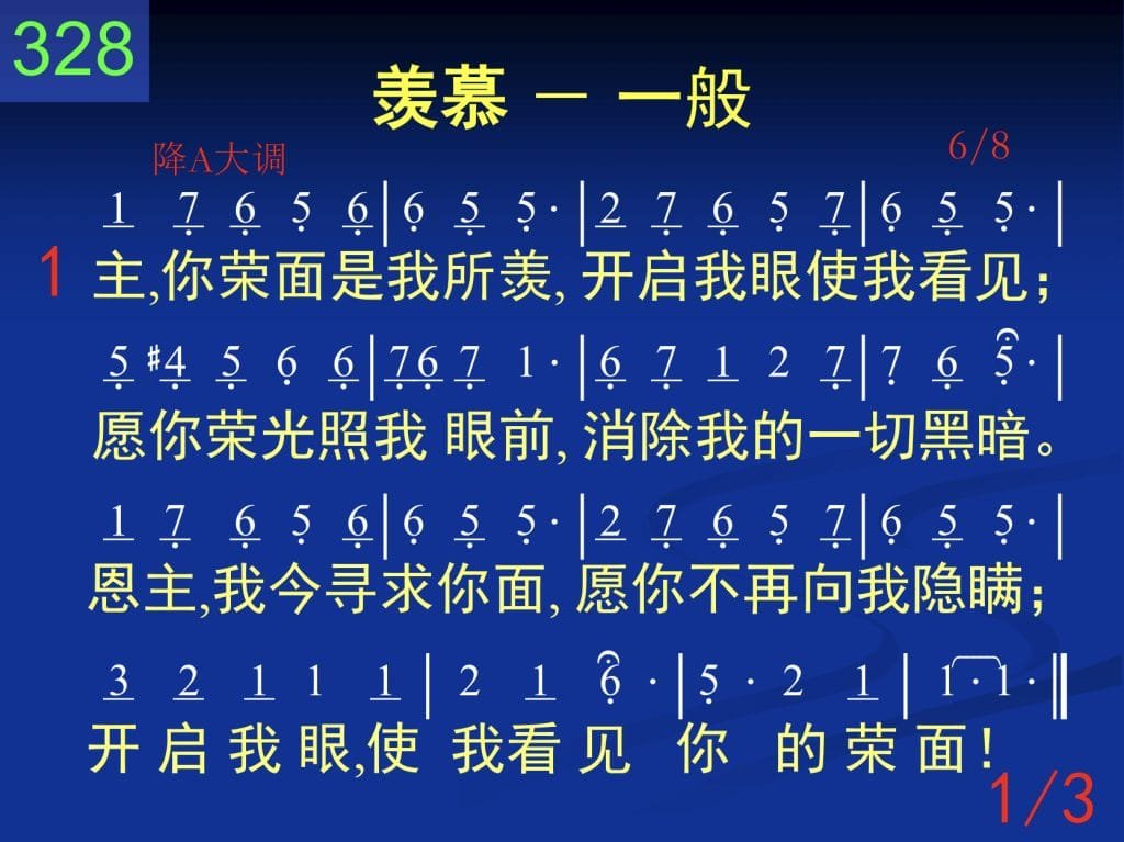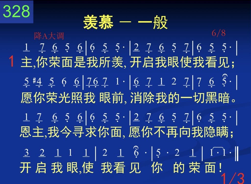 主,你荣面是我所羡,开启我眼使我看见;