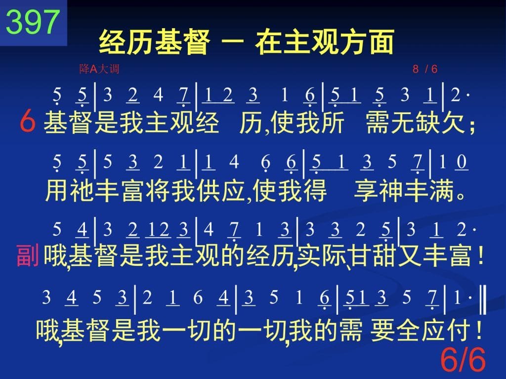 基督是我主观经历,使我所需无缺欠;