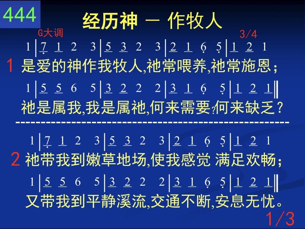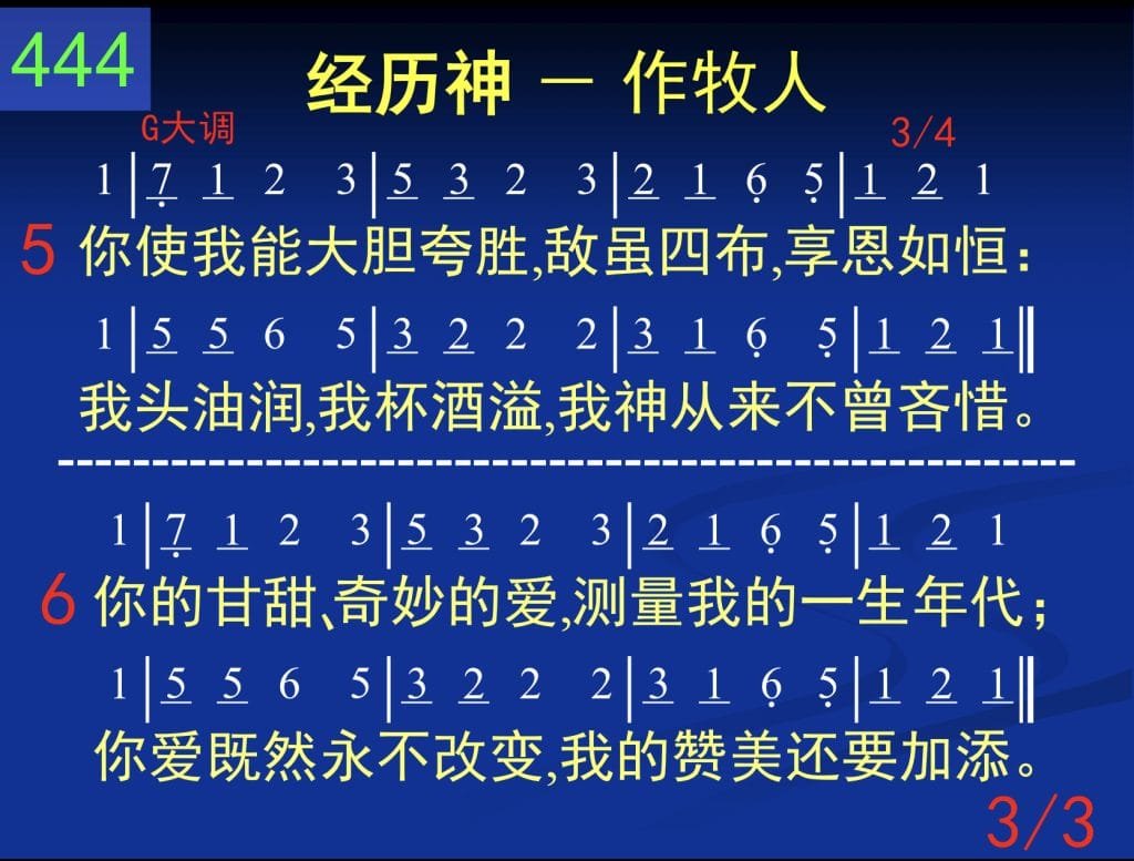 是爱的神作我牧人,他常喂养,他常施恩;