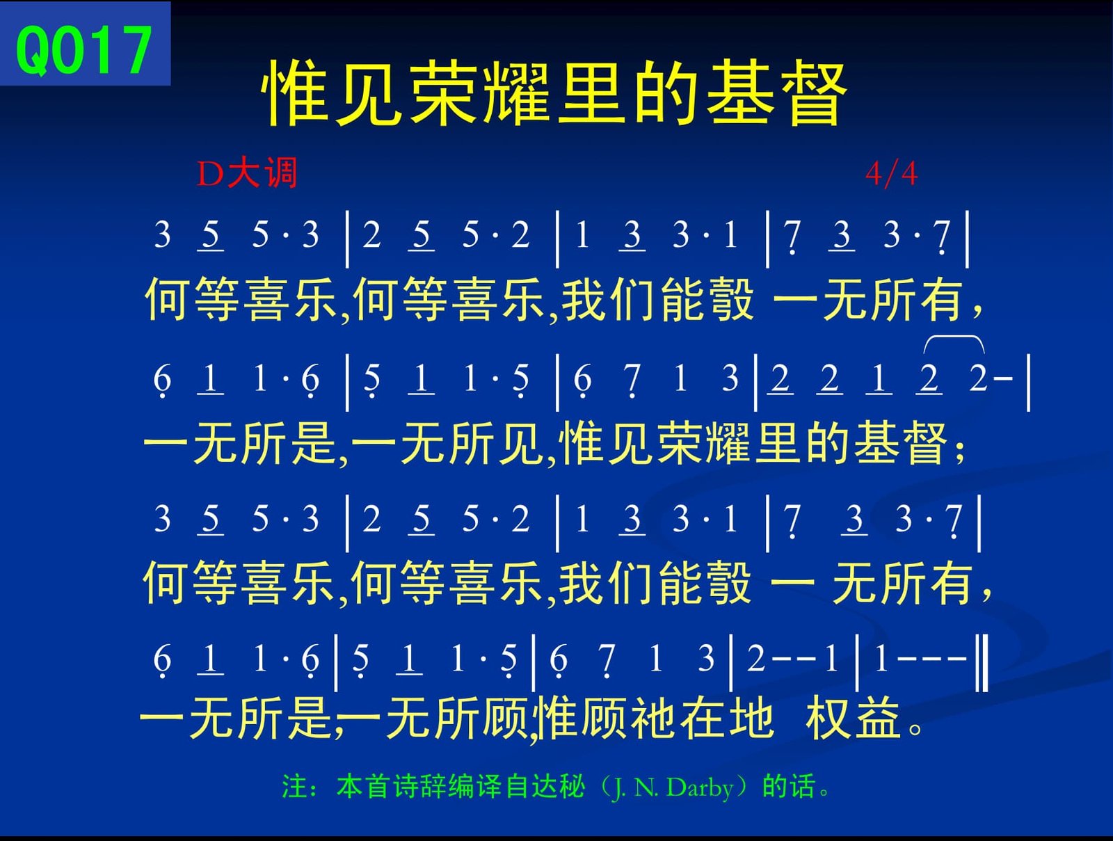 注:本首诗辞编译自达秘(J. N. Darby)的话。