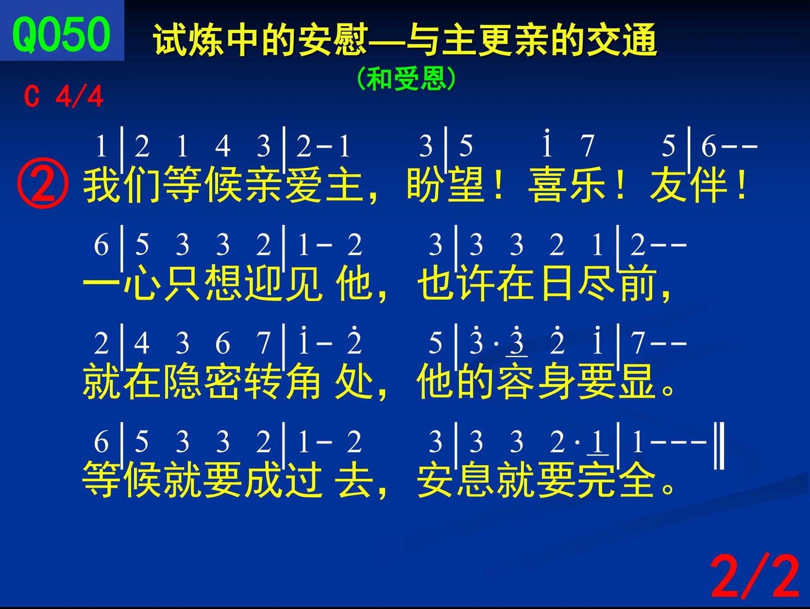我们等候亲爱主,盼望!喜乐!友伴!