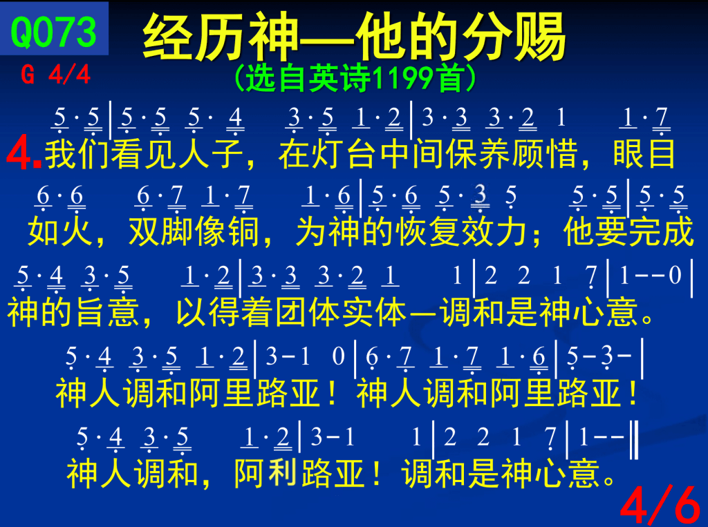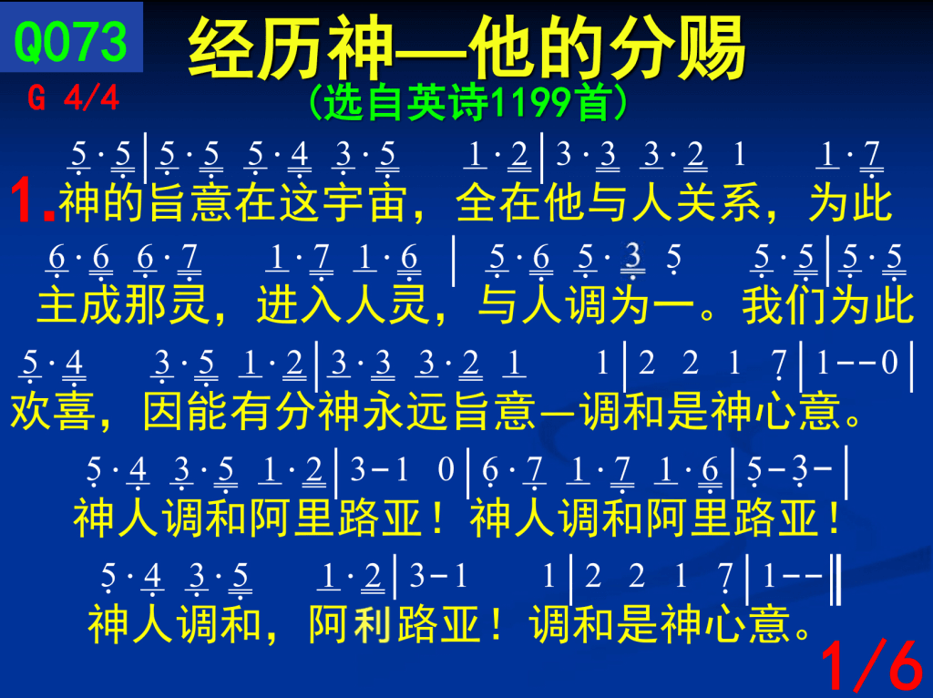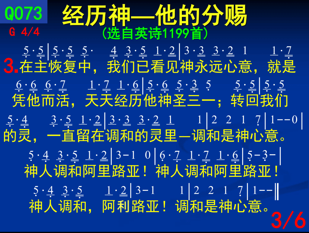 一同有分享受那城,我们喜乐真无比–调和是神心意。