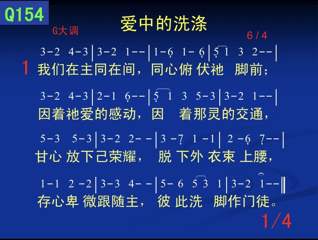 存心卑微跟随主,彼此洗脚作门徒。