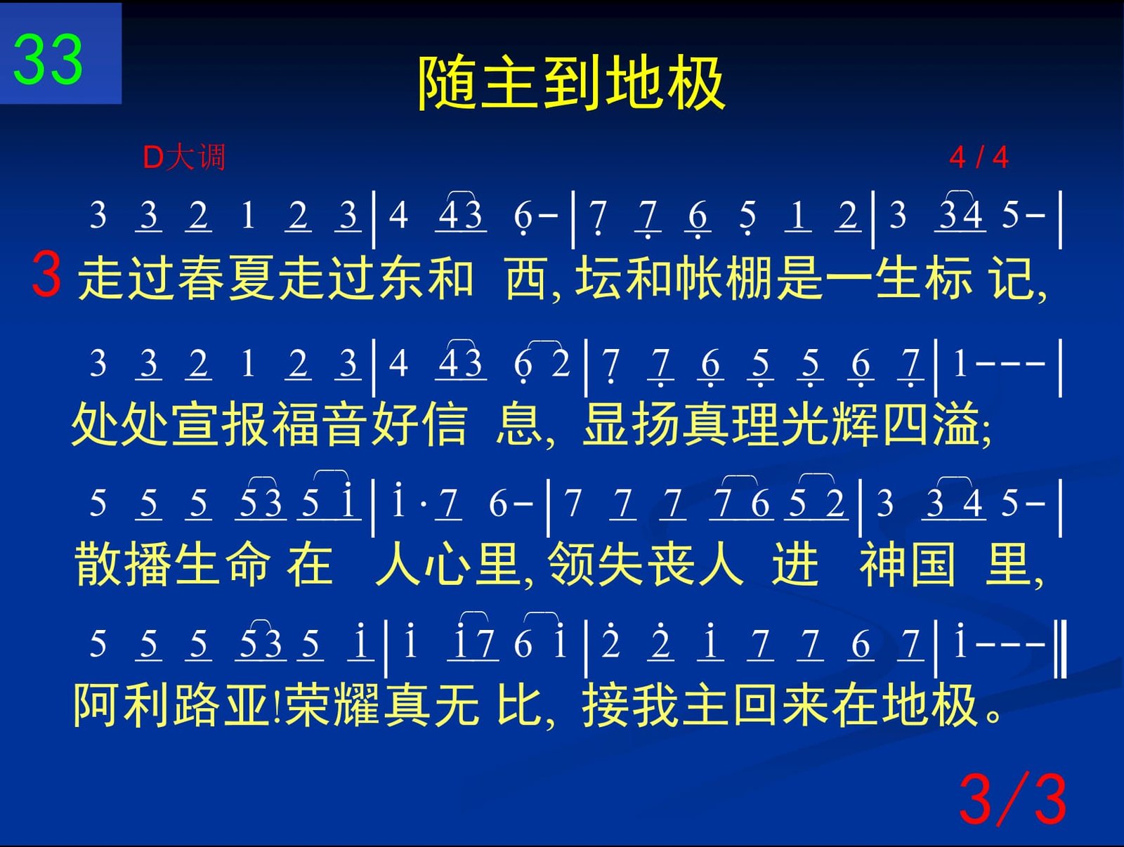 阿利路亚!荣耀真无比,接我主回来在地极
