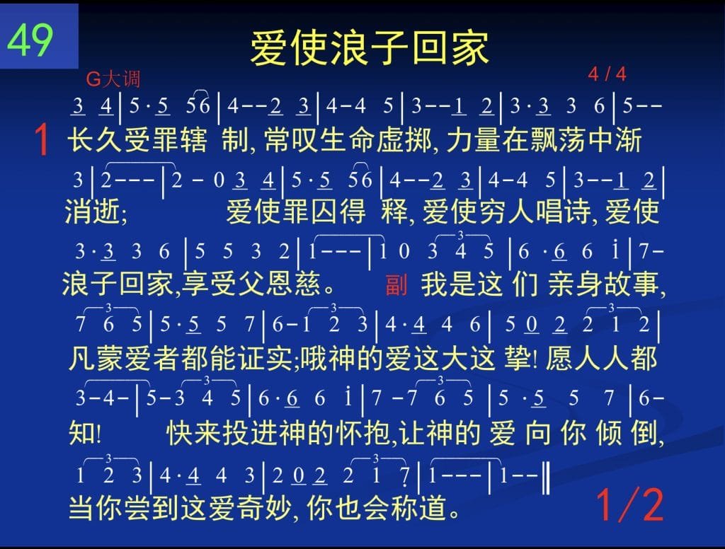 爱使穷人唱诗,爱使浪子回家,享受父恩慈.